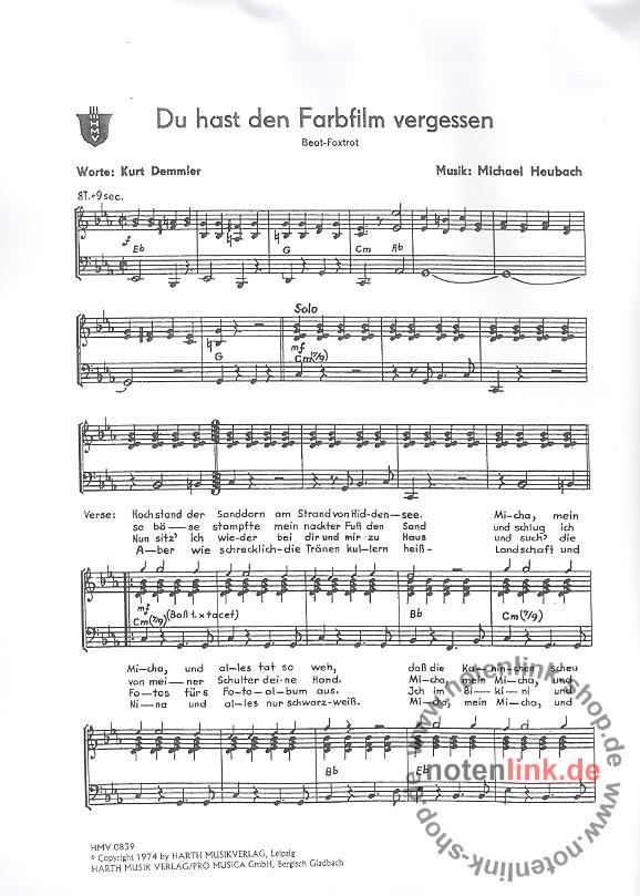 Heubach Michael Du Hast Den Farbfilm Vergessen Fur Klavier Gesang Gitarre Bei Notenpunkt Kaufen